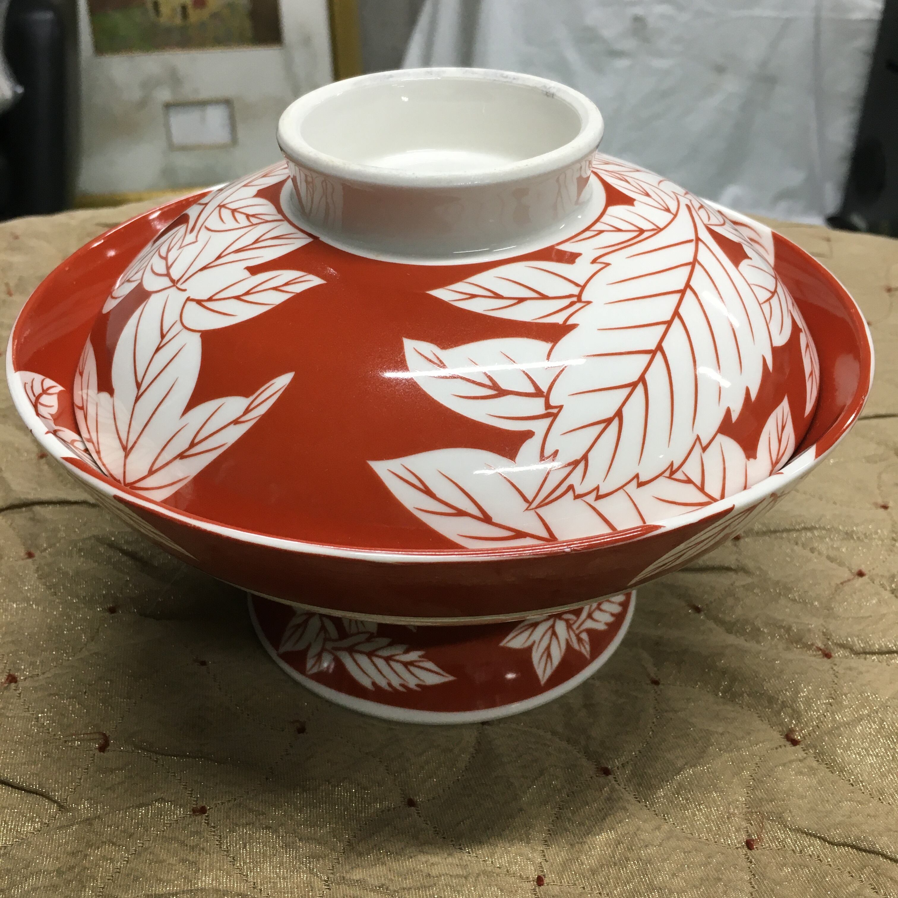 この有田焼 赤草葉柄 蓋付き深鉢は、伝統的な技法で生み出された美しい食器です!